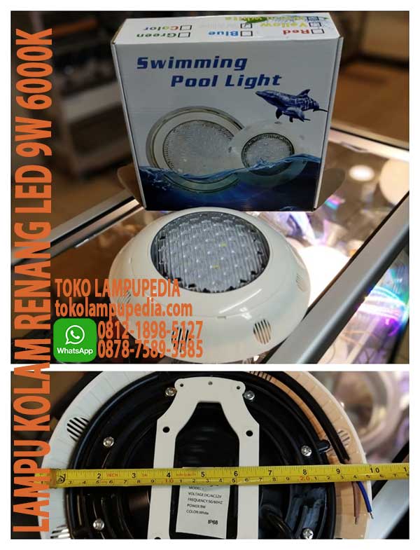 Lampu Kolam Renang 9W LED IP68, dipakai untuk memberikan pencahayaan dekoratif underwater pool, produk yang aman voltase DC12V, durable & aman.